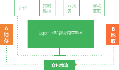 “Ego一格”智能寄存柜,依托定位、实时监控、极链智能云服务、移动互联网等技术,满足线下消费者日 常行程中的寄存需求,同时融合众包物流模式,将寄存服务在物联网技术下联动起来,实现“A地存, B地取”,满足消费升级后的全新用户需求,为消费者带来高品质、高效率、高体验感的高品质生活服务。